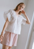 The new Confetti Textured Top is a voluminous, frothily structured blouse. Constructed in an elegantly oversized, artful shape with thoughtful pleats and masterful tailoring. Once again, featuring a rare fabric with one-of-a-kind texture: Like confetti sprinkled all over, this soft, ethereal beauty features beautiful applique-ribbons sewn onto the fabric canvas.