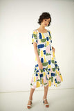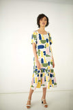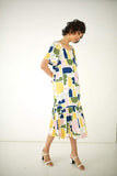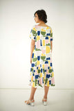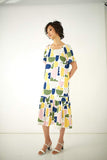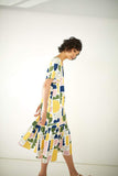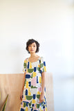 A swingy, ruffled midi dress featuring the cutest, aptly named 'Dinosaurs' print by Ophelia Pang. A joyful canvas inspired by the back of the Spinosaurus dinosaurs.