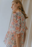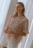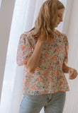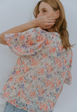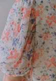 Tailored with a soft, delicate floral printed Gossamer fabric. A flattering blouse that drapes breezily on the body.