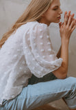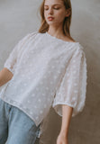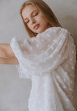 Fabric: Chiffon with textured Pom-Pom detail, lightweight. Machine wash in laundry bags or hand wash in cold water.