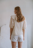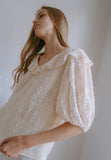 The Starlight Ruffled Top features a precious, limited edition fabric with the dreamiest textures. Ruffled at the collar, the blouse is a soft, breezy summer moment, finished with our signature 100% cotton lining on the inside for ultimate pleasure on the skin.
