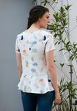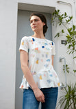 Fancy work wear or adorable weekend top. You decide. A round-neck, peplum cut blouse with a special, baby soft fabric.