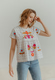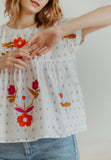 The Wild Hearts Embroidered Top, with its charming textured cotton fabric.