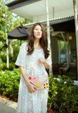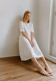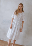 A swingy, romantic flare-cut dress gathered at the waist for ultimate comfort and style. Featuring our signature special fabrics – on this dress – a rare, exquisite 3D floral-textured lace cotton.