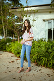 Myriam Van Neste X Soon Lee. A dreamy collection featuring the beautiful artworks of artist Myriam Van Neste. Interpreted into an exquisitely embroidered series of clothing and hand beaded clutch bags, through an intimate collaboration with crafters based in India, New Delhi. See more on this special collection in our blog post here
