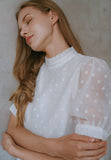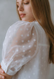 The cutest tulle top for dreamy days. Makes such an amazing blouse for the office too! Read more about our Sustainable production model here.
