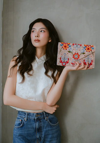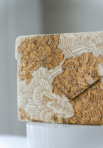 Carefully hand-beaded and hand stitched, the Soon Lee Beaded Handbag is an amazing 3-way bag: Use the shorter chain strap as a Shoulder-bag, as a Crossbody with the longer chain, or in its original Clutch style.