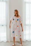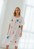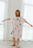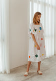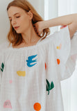 The Dreamers Embroidered Dress, a breezy, lightweight 100% cotton dress. Delicately embroidered with soaring birds and blooming plants.
