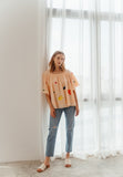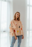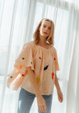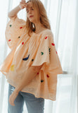 The Paradise Embroidered Top, a swingy 100% cotton blouse featuring a delicate embroidered canvas of soaring birds and tropical blooms.